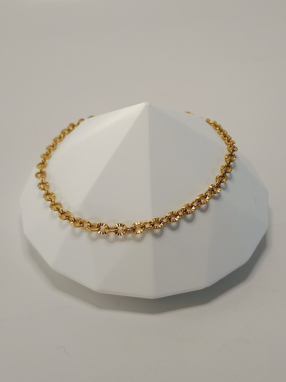 Tyndt, elegant og tidsløs armbånd med ovale led med star link mønster i 18 karats vandfast forgyldt stål.
