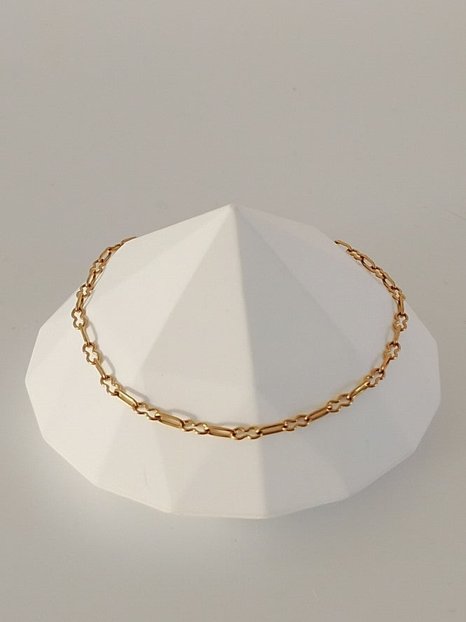 Elegant og tynd 18 karats vandfast forgyldt stål armbånd med fine små led formet som ottetaller og ovale led.