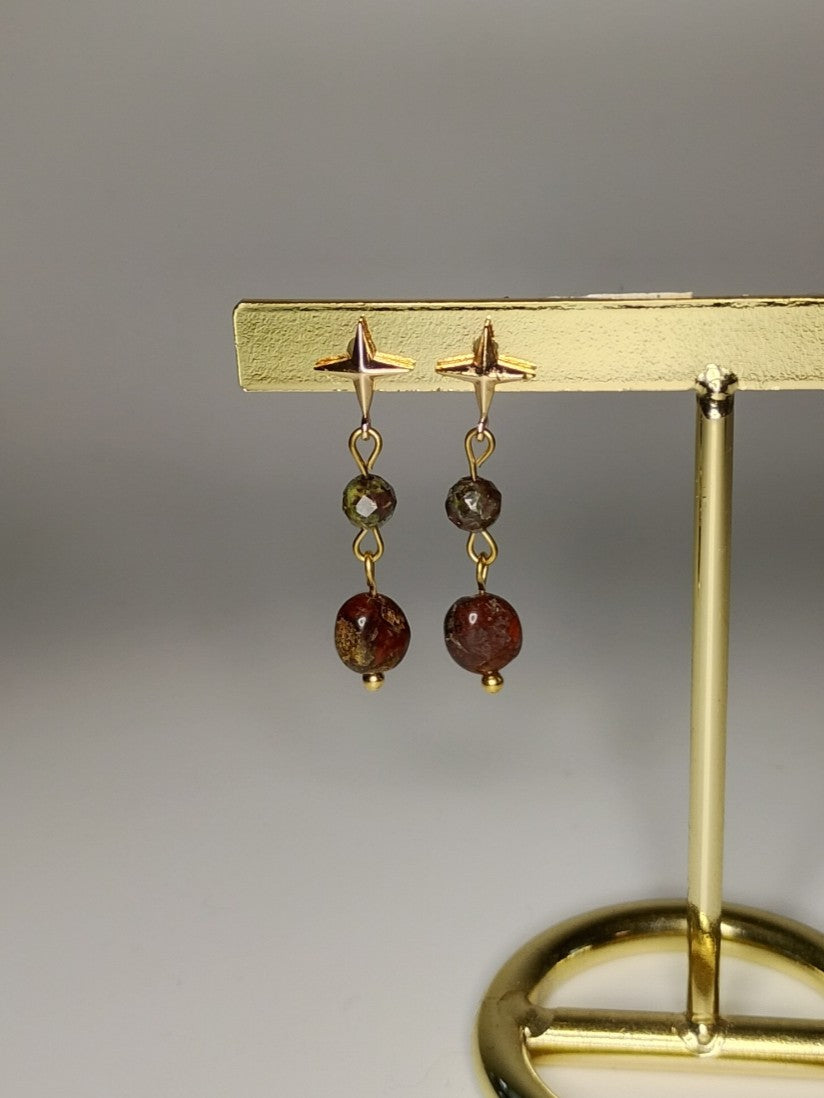 Stjerneformet design med et feminint og tidløst udtryk med en smuk drageblodssten, den er kendt for sine dybe, varme nuancer og sit naturlige spil i farven.